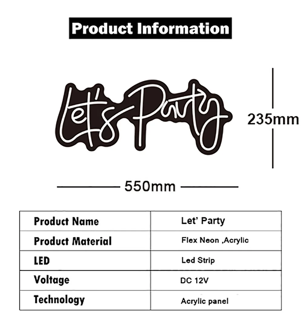 Неоновая светодиодная вывеска Let вечерние, индивидуальная светодиодная подсветка на день рождения, гибкая прозрачная акриловая неоновая вывеска, свадебное украшение для комнаты