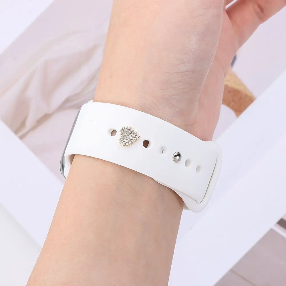 Декоративные подвески для браслета Apple Watch, силиконовый браслет, металлические декоративные гвозди Love для iwatch, спортивные Смарт-часы, ремешок, украшения
