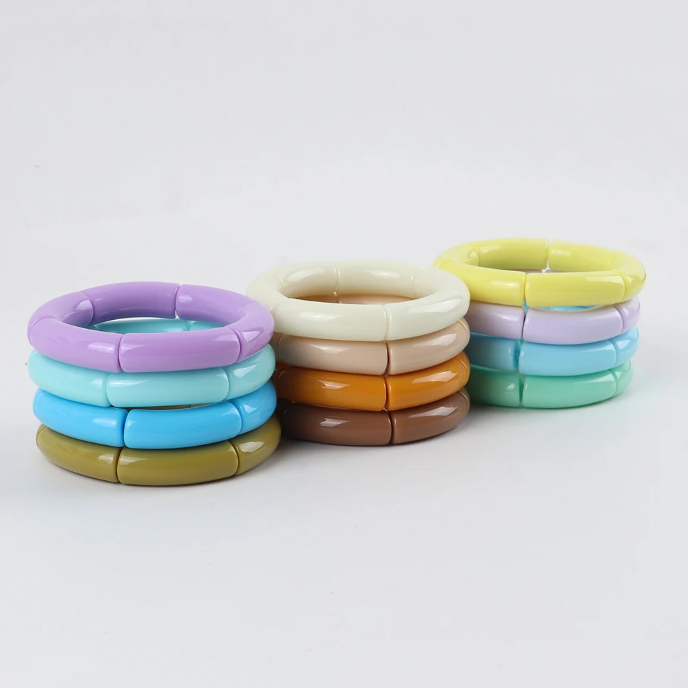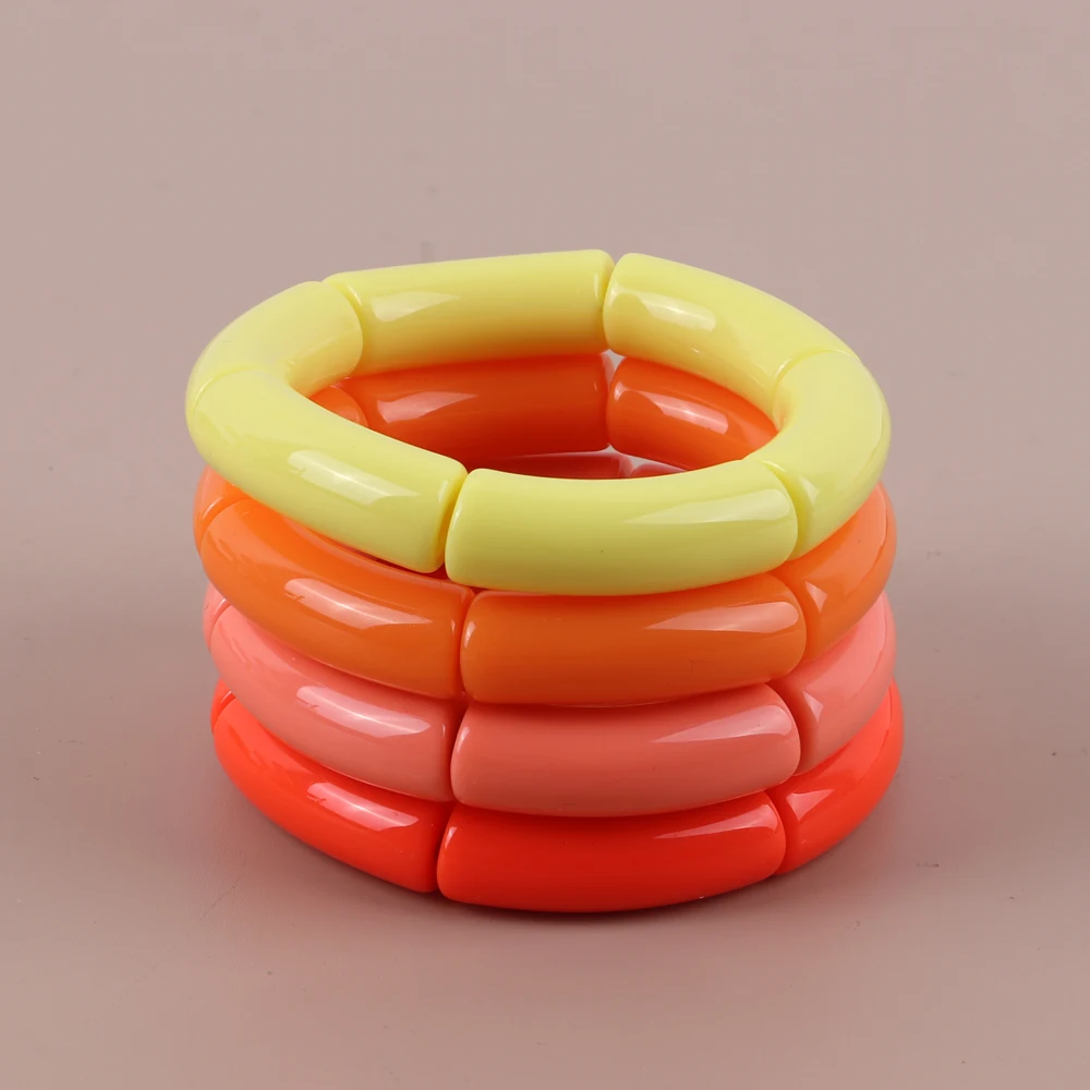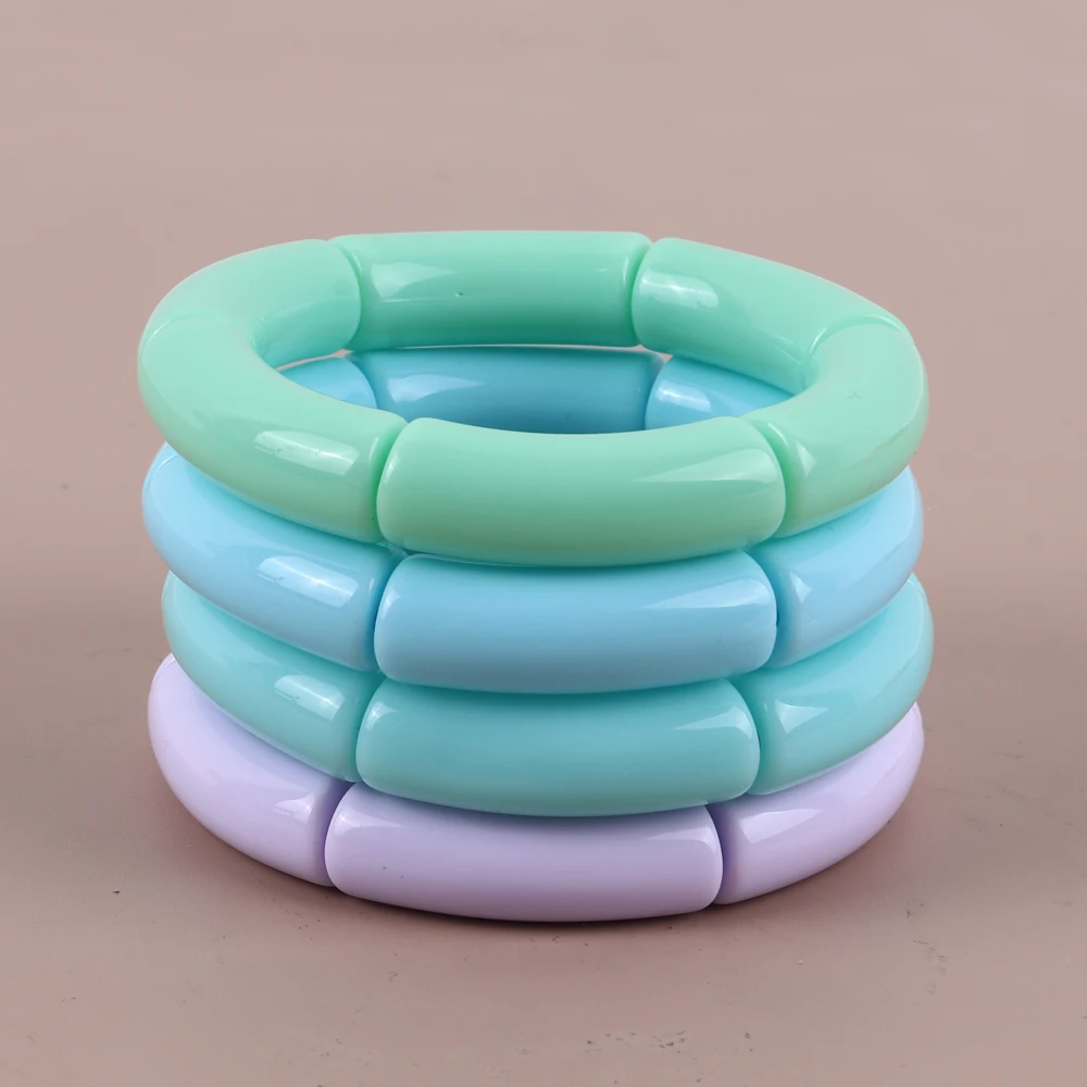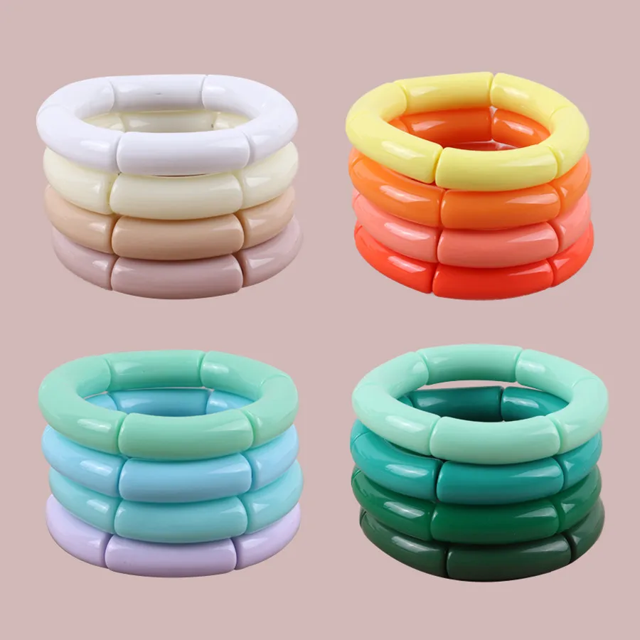 Новые Яркие Браслеты из акриловых бусин для женщин, эластичные браслеты-манжеты с бусинами из смолы, браслеты, модные ювелирные изделия, подарки