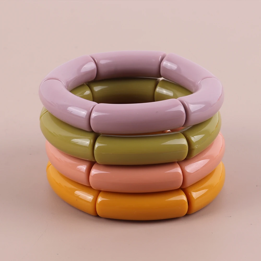 Браслеты и обручи женские, из акрила, эластичные, изогнутые, с буси...