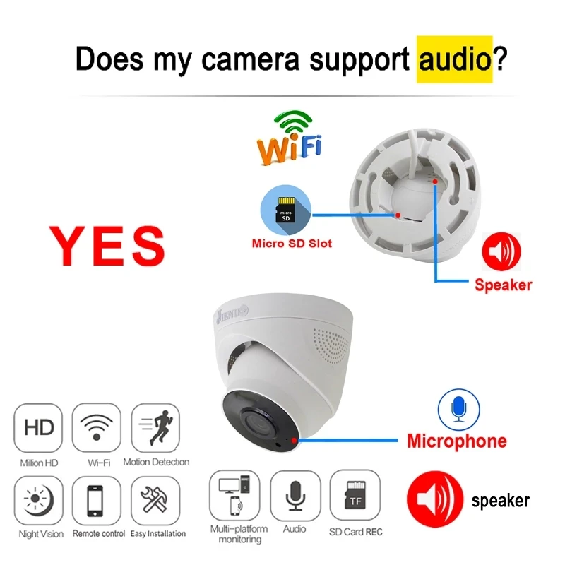 Вы можете подключить беспроводную ip-камеру к видео и звуку из любой точки мира через мобильное приложение.Поддержка двустороннего голосового домофона