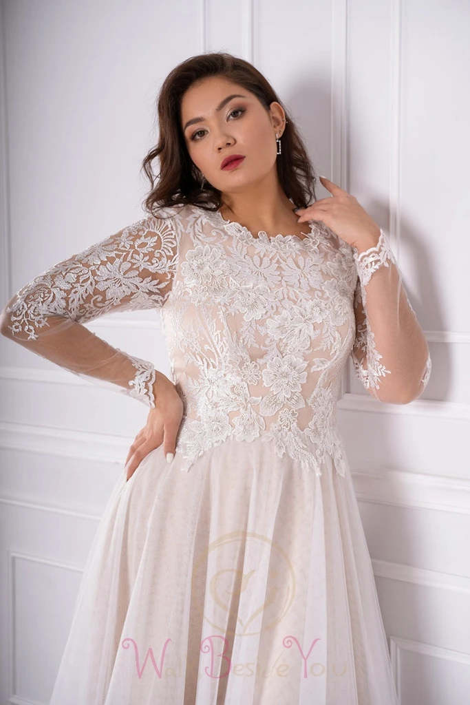RODDRSYA Свадебные платья с длинным рукавом, Прозрачная Кружевная а...