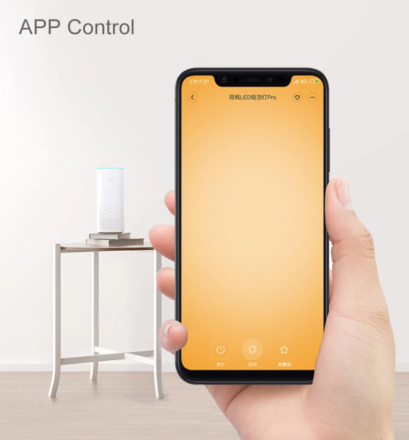 Для защиты глаз пользователя от яркого светильник используется прочный диффузор из пластика PMMA. Он смягчает световой поток и делает его полностью безопасным для глаз. Устройство управляется смартфоном, bluetooth-пультом или голосовым помощником. Важно отметить, что пульт дистанционного управления не входит в посылка и приобретается отдельно.