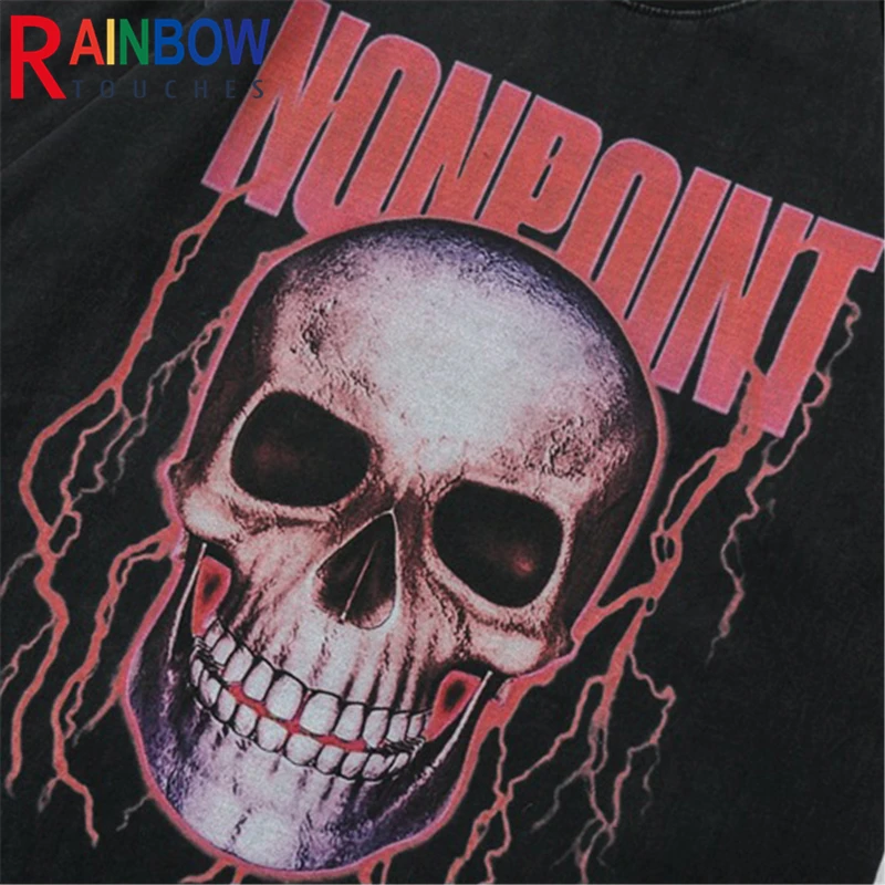 Футболка оверсайз Rainbowtouches в стиле хип-хоп унисекс, мужская с графическим принтом черепа, с коротким рукавом, в винтажном стиле ретро