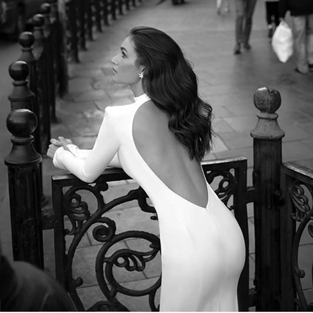 UZN сексуальные атласные свадебные платья с открытой спиной Русалка с высоким воротником круглым вырезом Свадебные платья простые с длинным рукавом платье для невесты