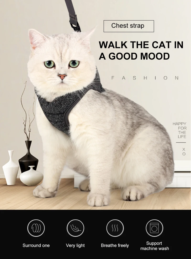 Шлейка с поводком и жилетом Anti-Escape Small Cat, мягкая воздухопр...