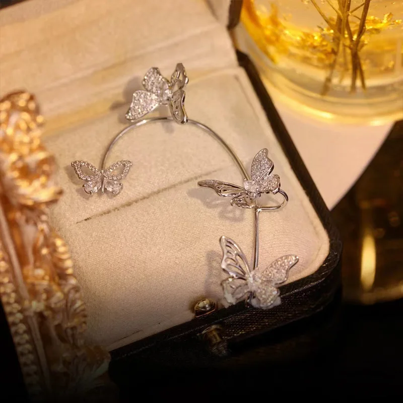 Позолоченные металлические клипсы-бабочки для ушей без пирсинга для женщин, сверкающие циркониевые клипсы для ушей, серьги-каффы, свадебные украшения