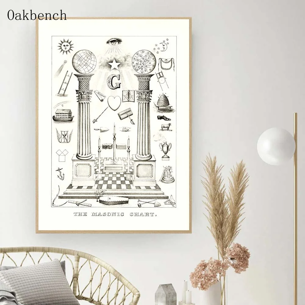Картина Freemason, винтажные настенные постеры, ручной рисунок, Картина на холсте, масонская картина, картина, настенное искусство, Декор