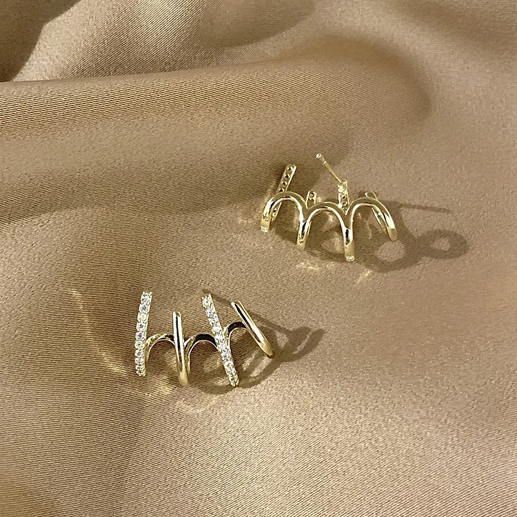 Корейские модные серьги-гвоздики с четырьмя зубцами для женщин, изы...