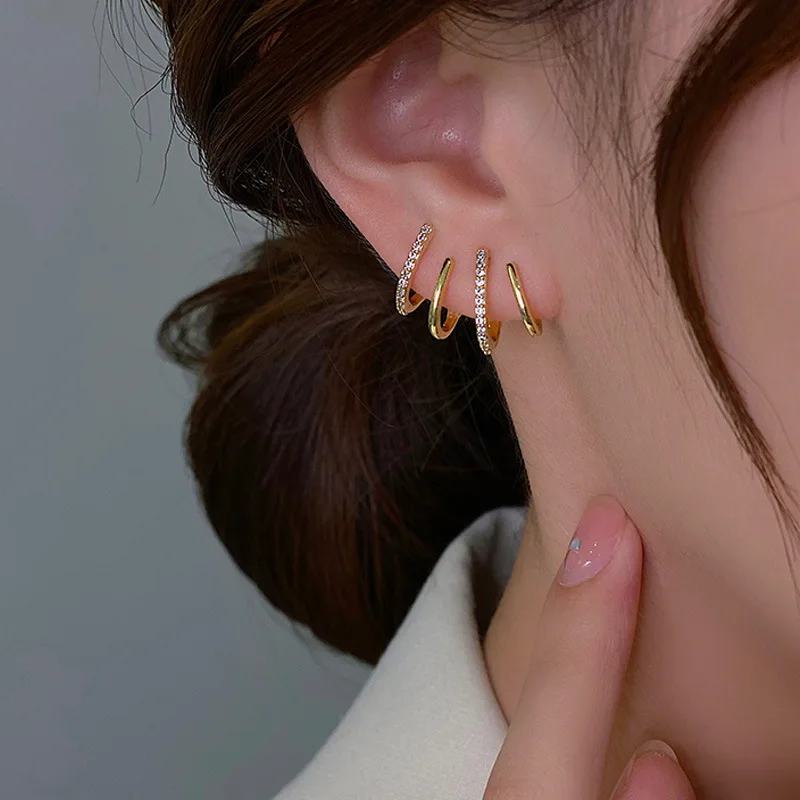 Корейские серьги-клипсы с крючком для ушей для женщин, с четырьмя з...