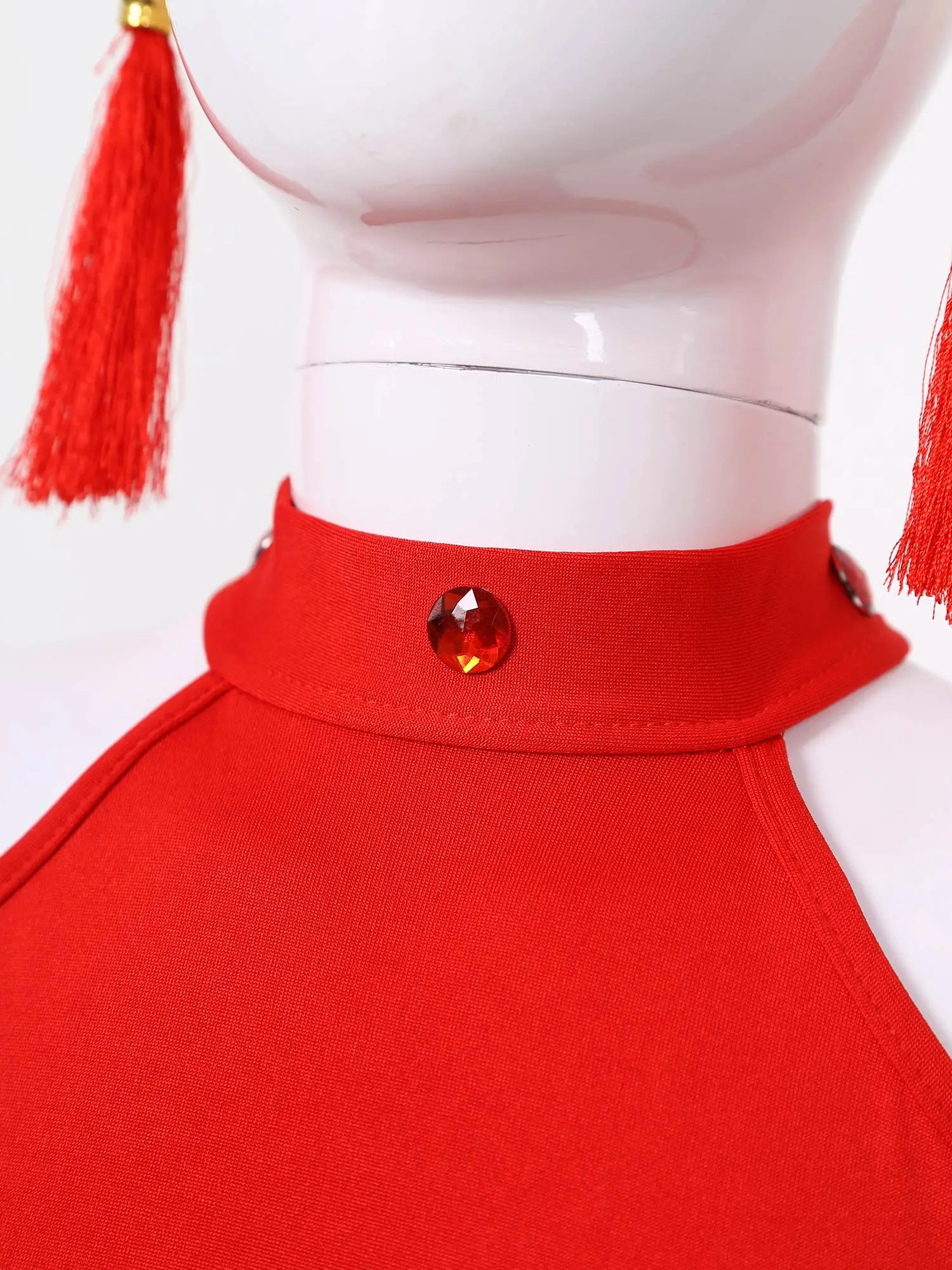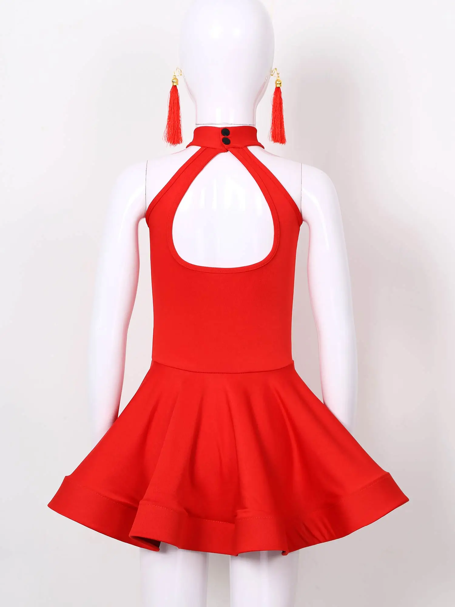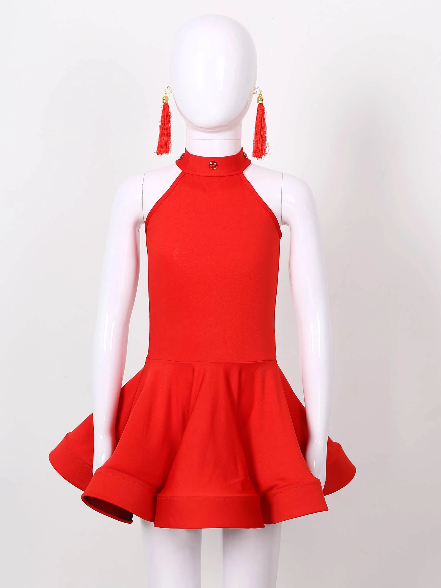 Особенности: Изготовлен из высококачественного материала, легкий светильник, мягкий, дышащий и удобный для ношения, очень гладкая поверхность на ощупь. Платье с круглым воротником и без рукавов; Стразы; Открытая спина; Простой однотонный цвет. Отлично сочетается с шортами-боксеры с эластичным поясом; Красивые серьги с кисточками; Отличный комплект для девочек; Одежда для танцев. Таблица размеров означает возраст для девочек, но они предназначены только для общего руководства, ручная стирка в холодной воде и сушить в подвешенном состоянии. Подходит для любого случая, повседневной жизни, танцевальной одежды, выступлений на сцене, латинских танцев, на открытом воздухе, соревнований, игр и т. д.