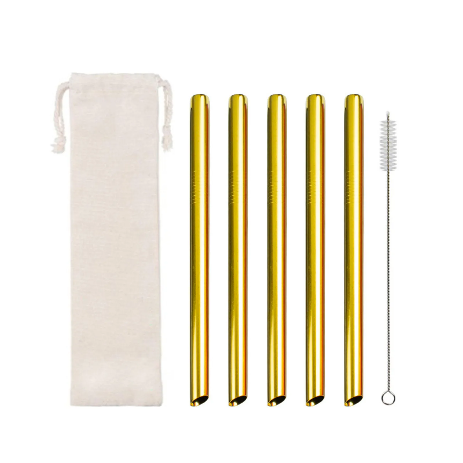 Многоразовые, упаковка из 5 соломинок из нержавеющей стали, красочные, 12 мм большие с 1 бруше