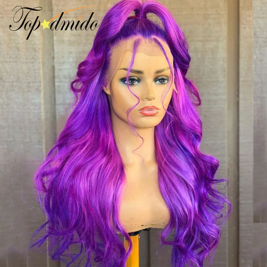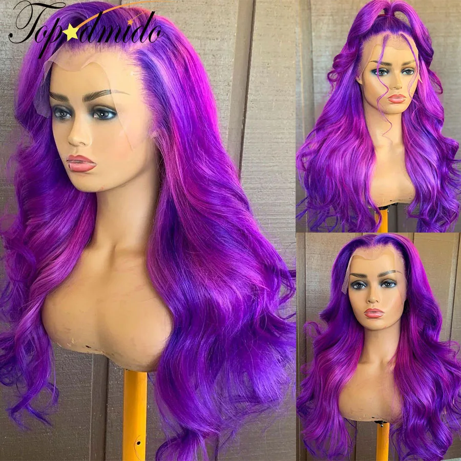 Topodmido фиолетовый цвет 13x4 Прозрачная кружевная кожа искусственные бразильские человеческие волосы Remy закрывающий парик без клея 4x4 кружевные парики