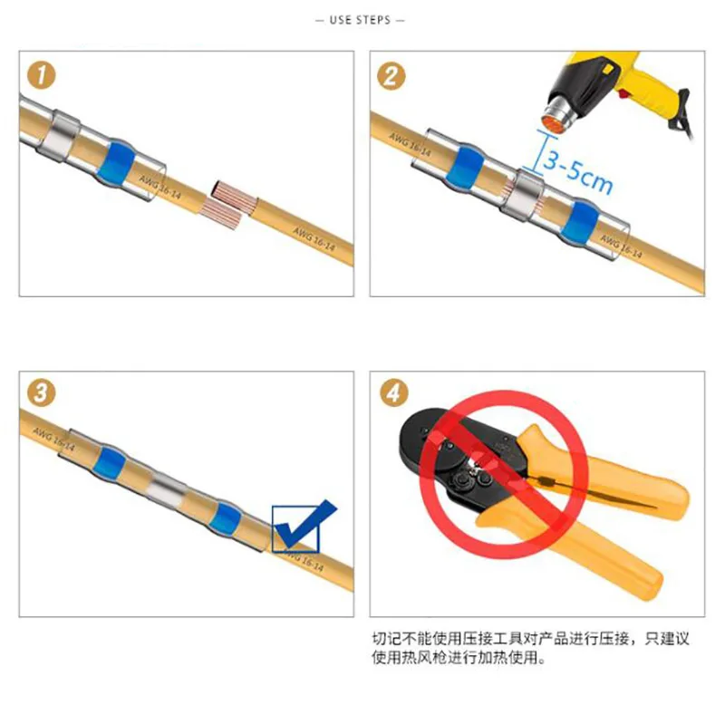 Водонепроницаемая электрическая термоусадочная трубка, 20 шт., соединитель для кабеля, Стыковая втулка, стандартная Изолированная пайка