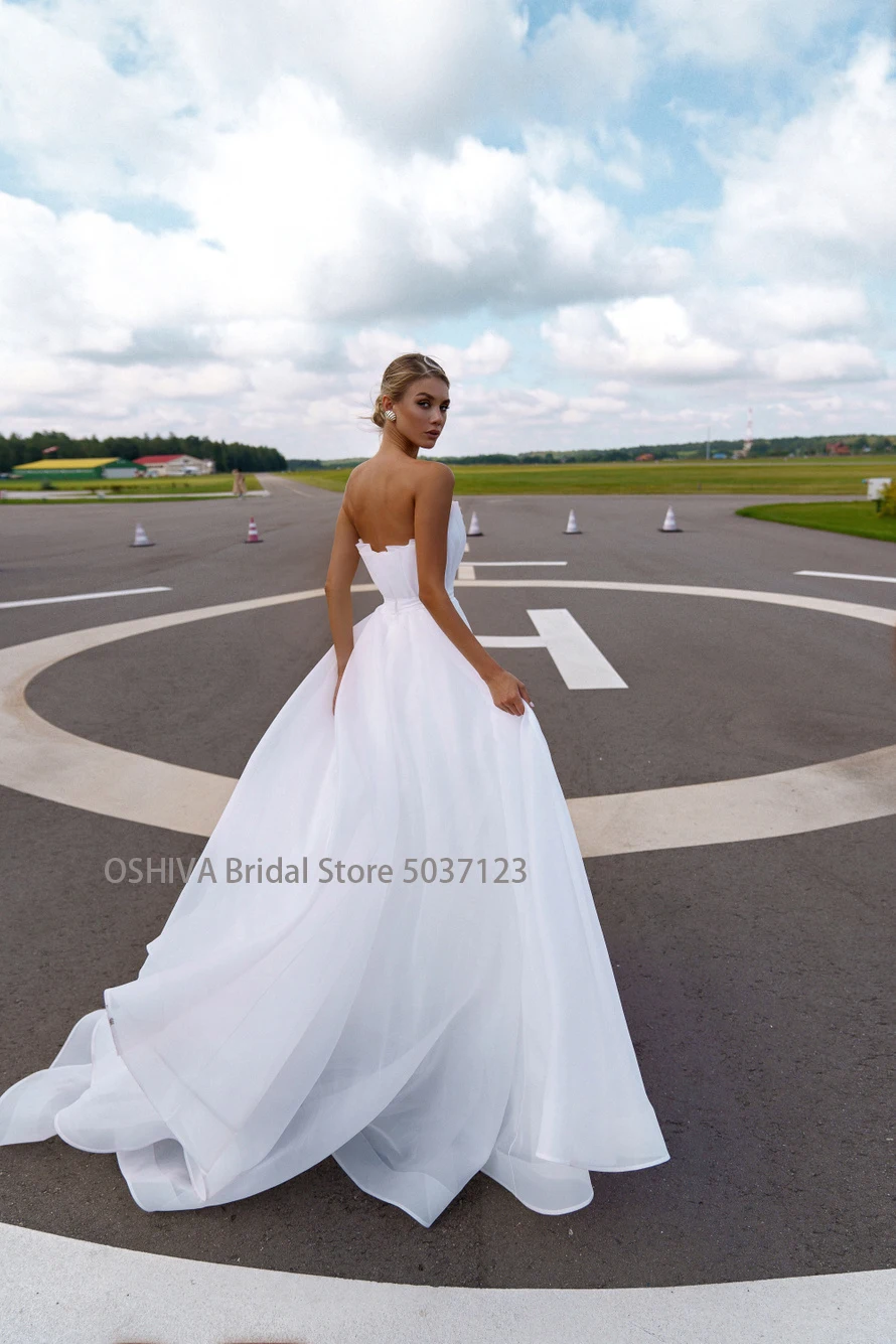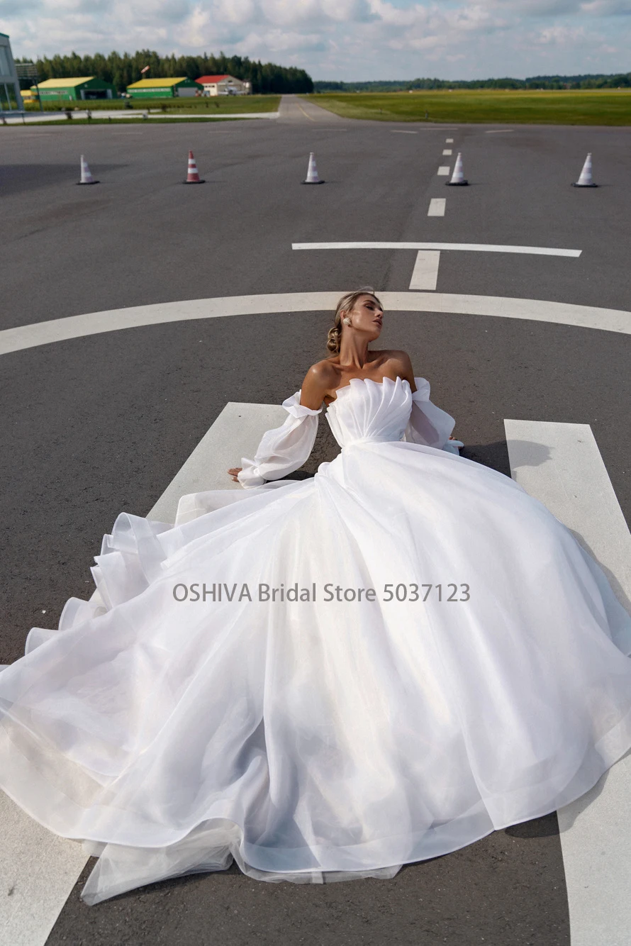 Свадебные платья из органзы в богемном стиле, со съемными длинными рукавами, открытыми плечами, трапециевидной формы, плиссированные, без бретелек, официальные свадебные платья