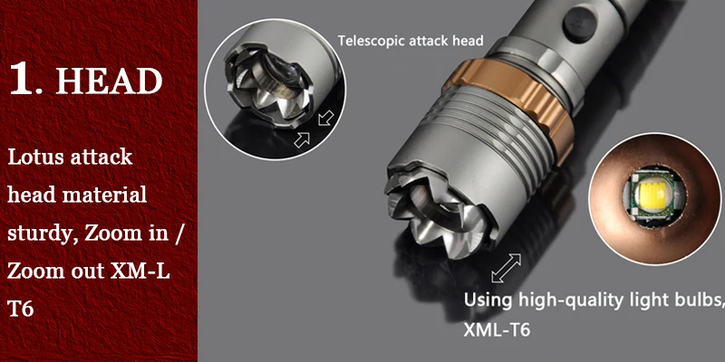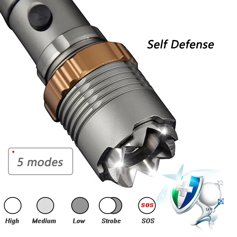 Светодиодный тактический фонарь XM-L T6, 5 режимов, масштабируемый фонарь для самообороны, перезаряжаемый светильник енный фонарь с аккумулятором 18650