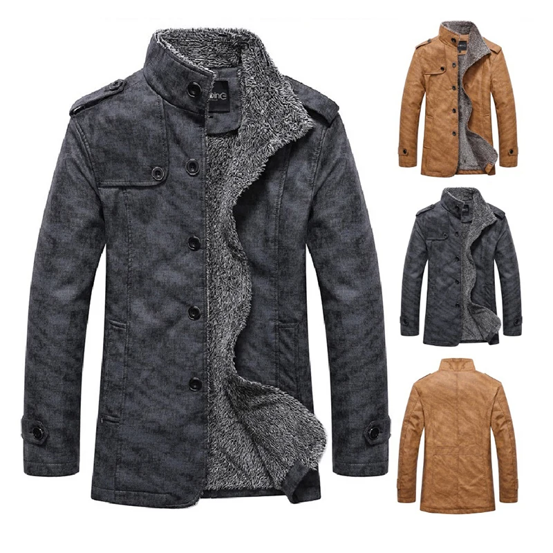 Мужская повседневная куртка из искусственной кожи, Толстая теплая к...