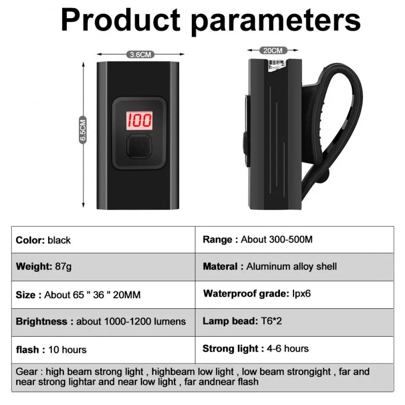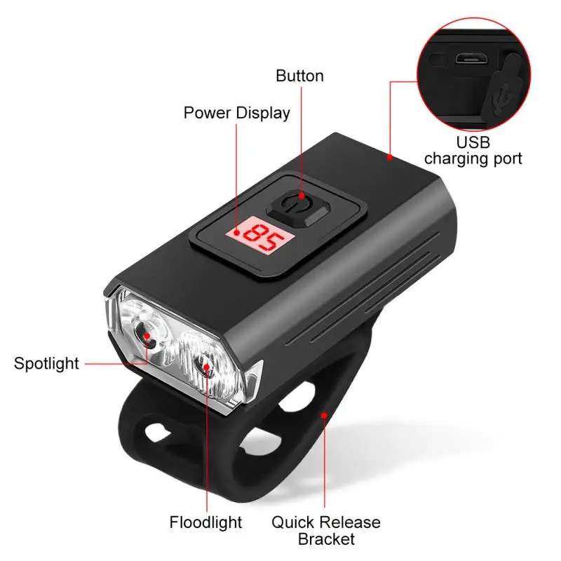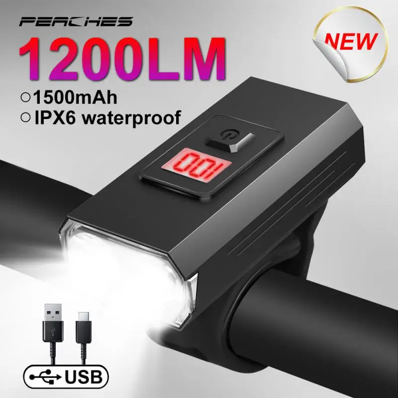 Фара велосипедная передсветильник с зарядкой от USB, 1200 лм