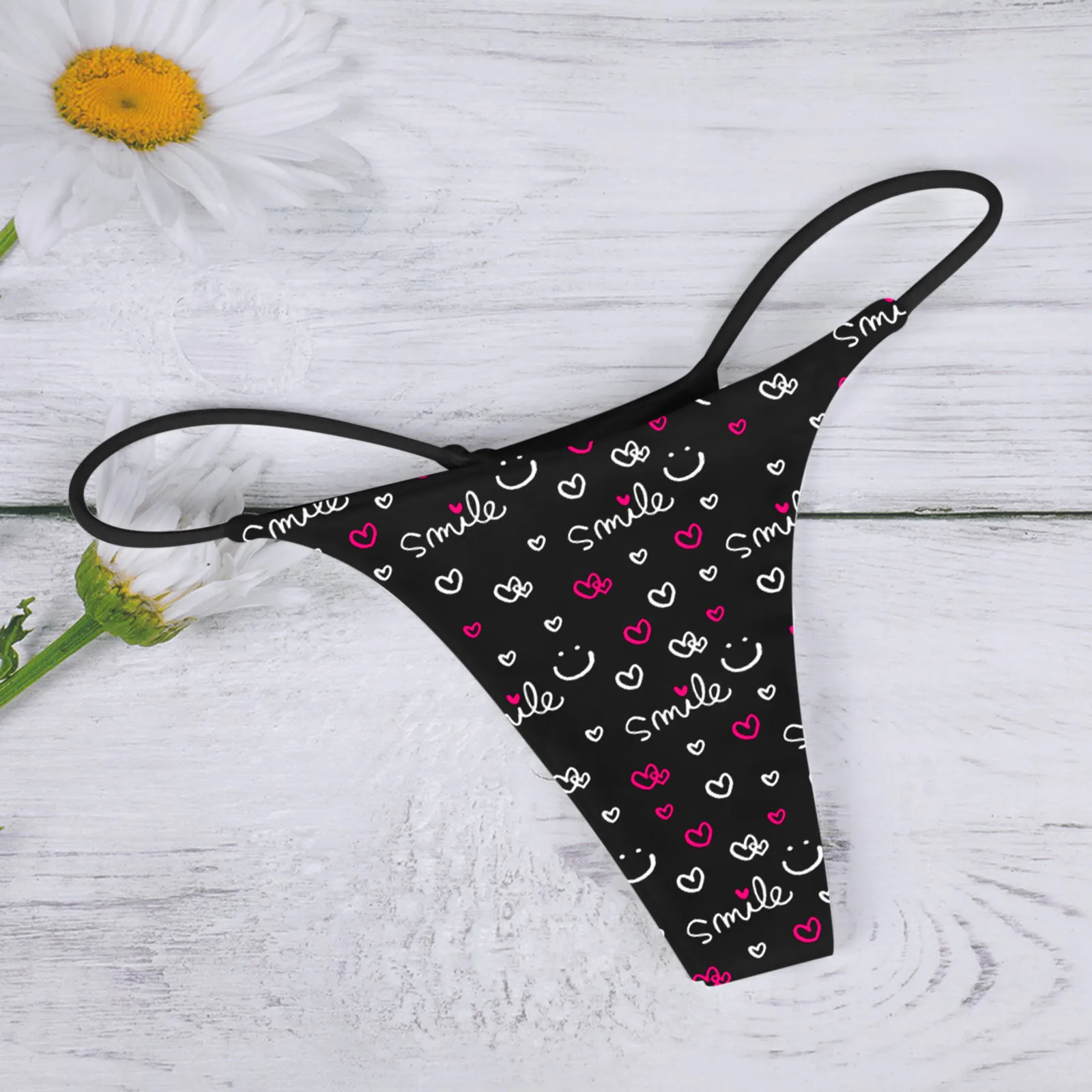 Женские трусики-стринги с заниженной талией, с принтом сердечек