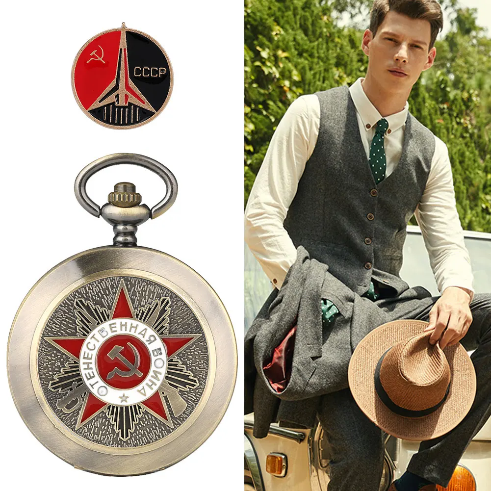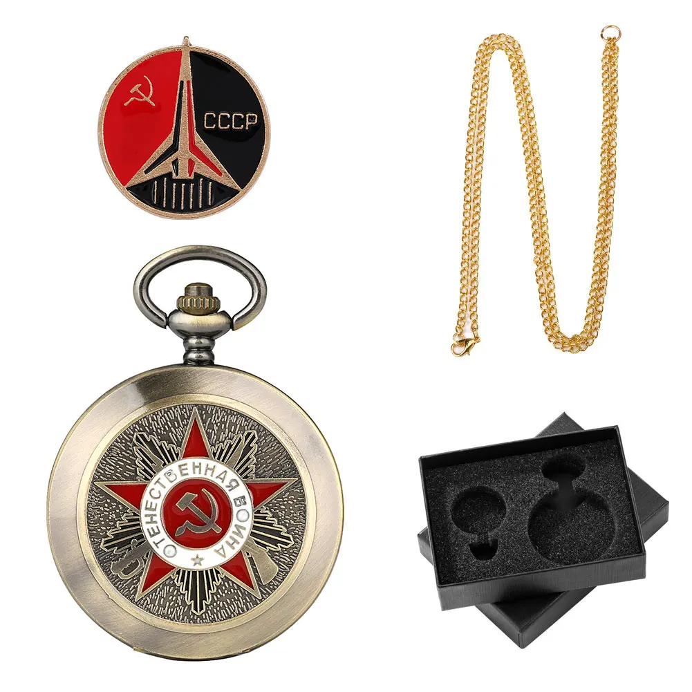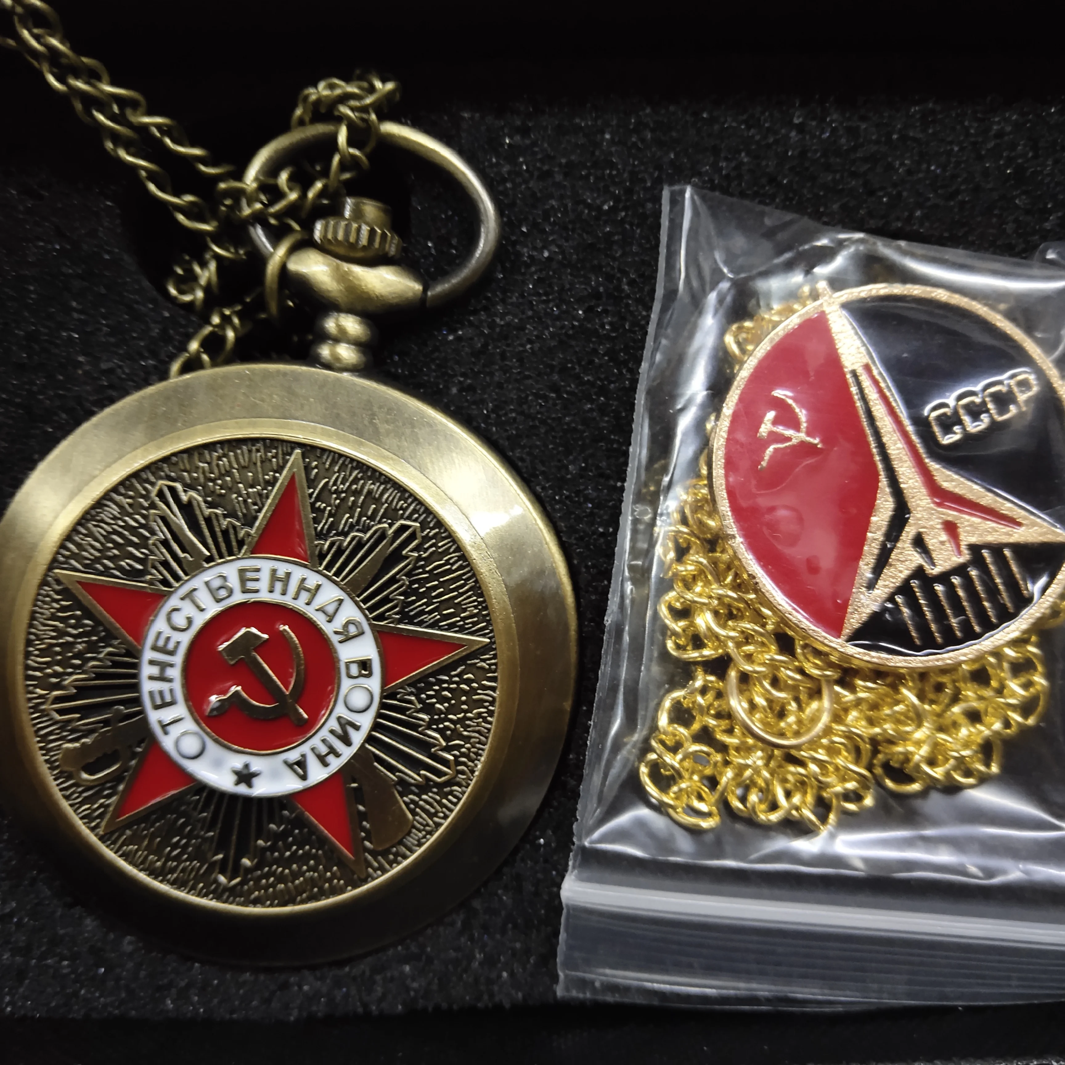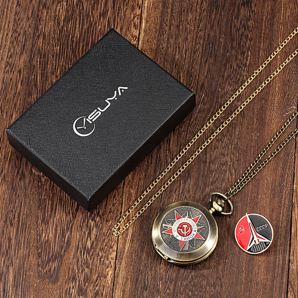 Набор карманных кварцевых часов СССР, советские знаки-подвеска, часы с цепочкой, кварцевые карманные часы с СССР, подарки для мужчин