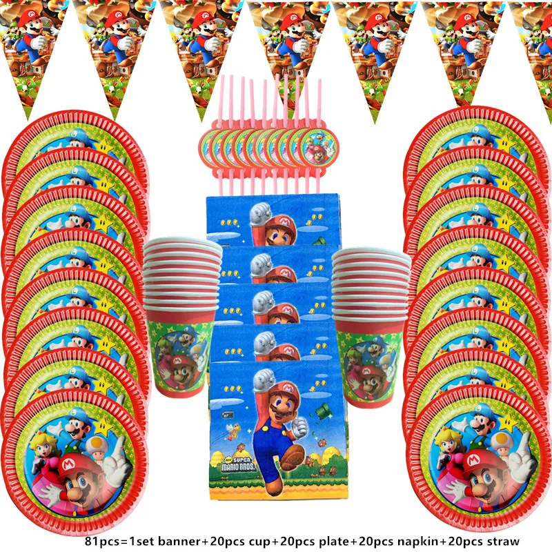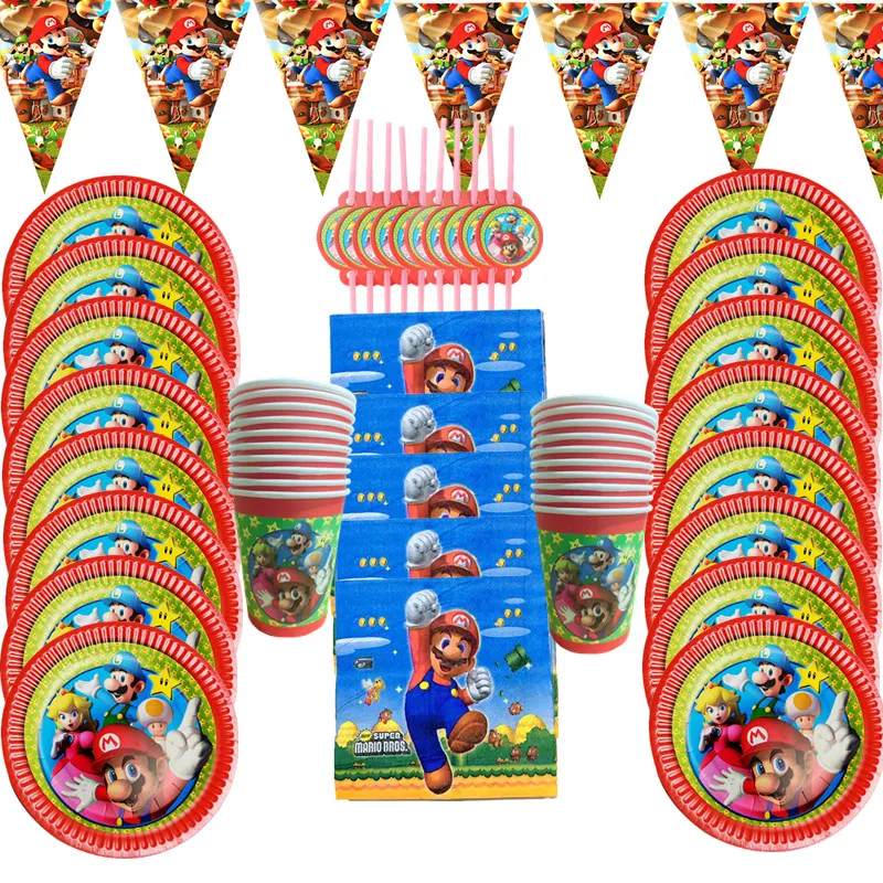 Набор одноразовой посуды в стиле супер Марио вечерние чашки, тарелки, салфетки, воздушные шары, товары для вечерние вечеринки, скатерть для будущей мамы, Декор