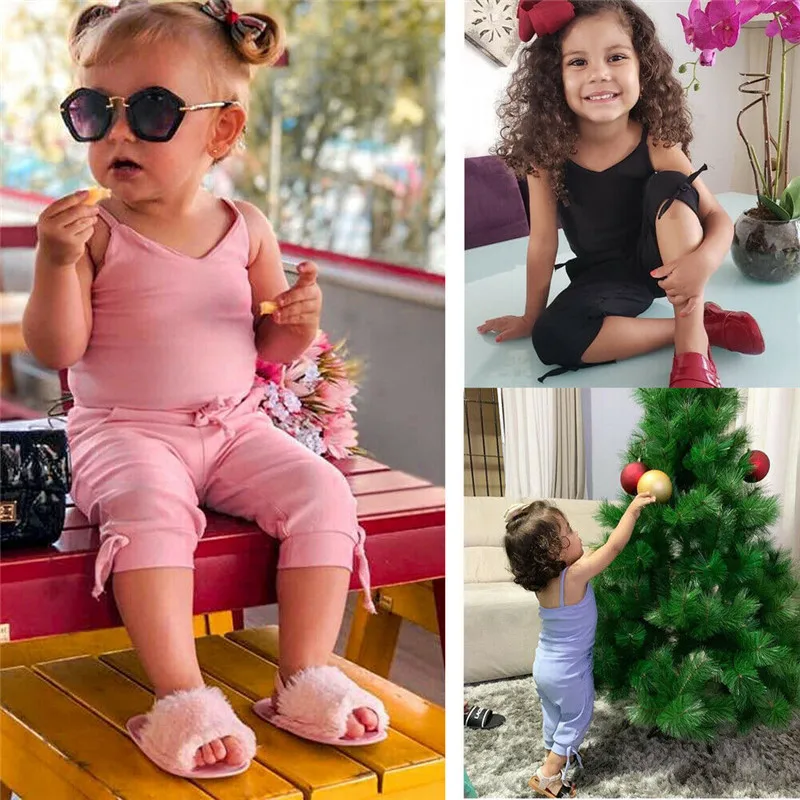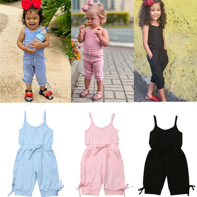 Детский однотонный комбинезон без рукавов, для маленьких девочек