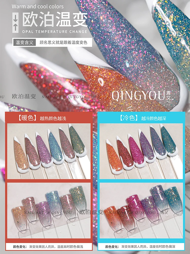 Термальный Гель-лак для ногтей, 15 мл, блестящий меняющий цвет при температуре гель сделай сам для отмачивания УФ-геля, 3-слойный светоотражающий Универсальный лак
