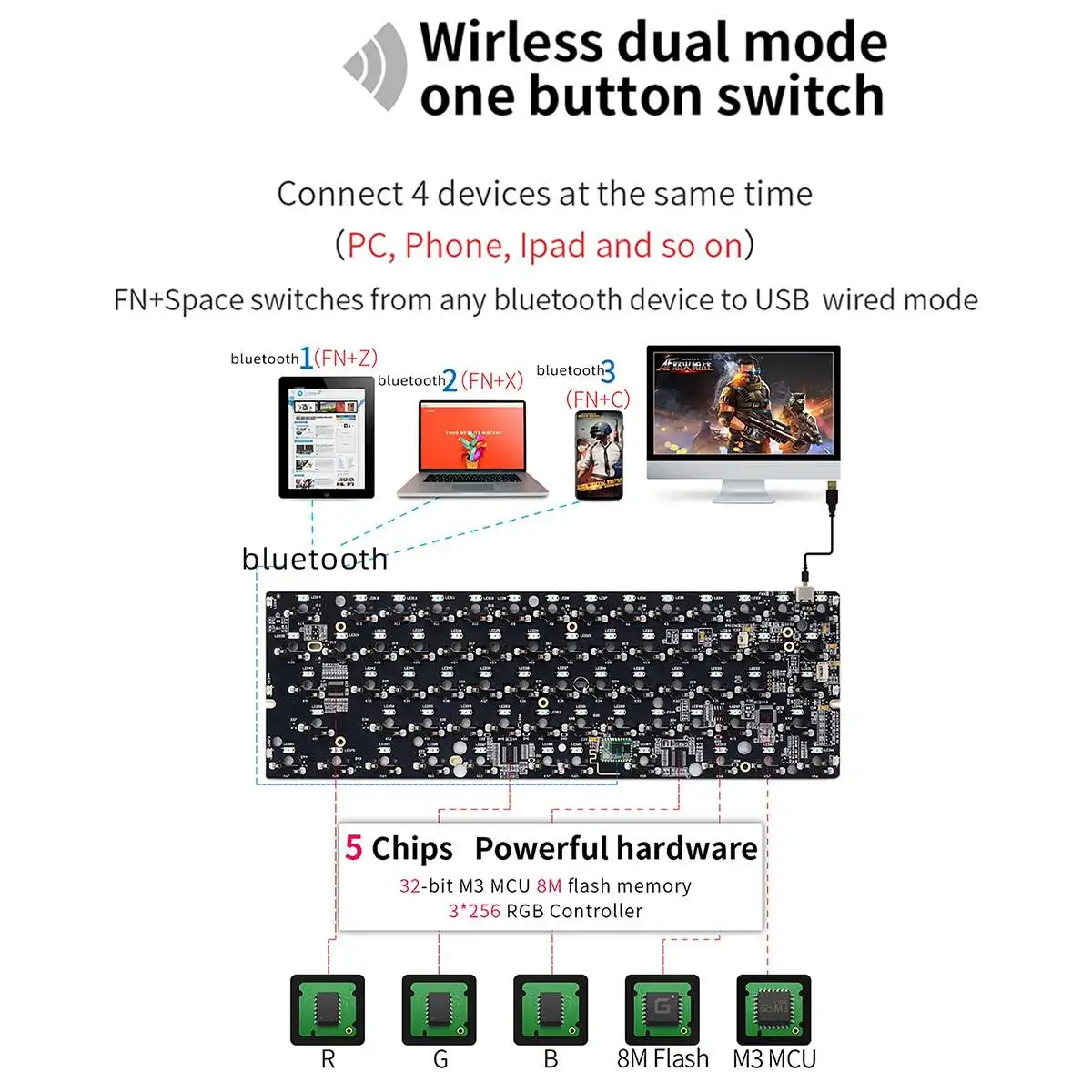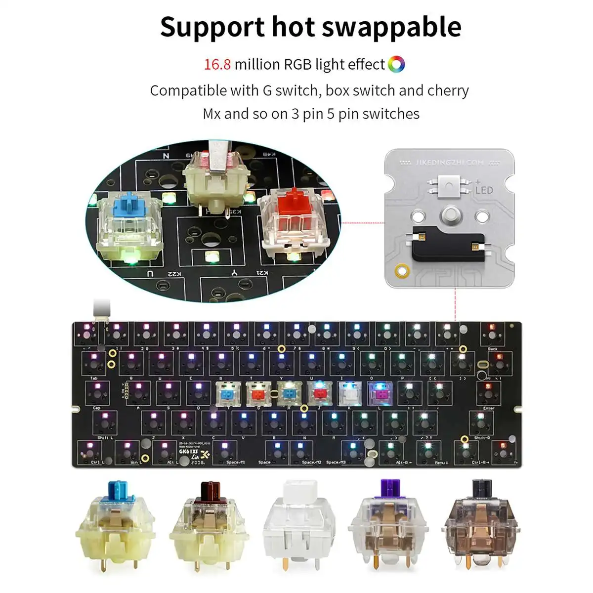 Новая клавиатура Hotswap для самостоятельной сборки, Беспроводная bluetooth клавиатура с кабелем Type-C, RGB подсветка, механическая клавиатура, индивидуальный комплект, 60% раскладка, печатная плата
