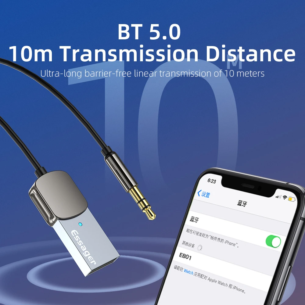 Адаптер Essager Aux Bluetooth с USB на гнездо 3,5 мм, аудиоприемник Bluetooth 5,0, комплект громкой связи, USB Aux Bluetooth для автомобиля