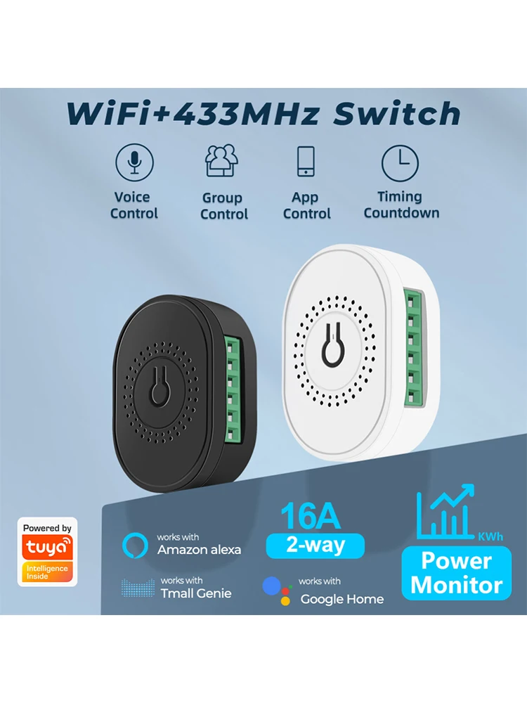 16A с монитором мощности Tuya Smart WIFI RF433 выключатель работы
