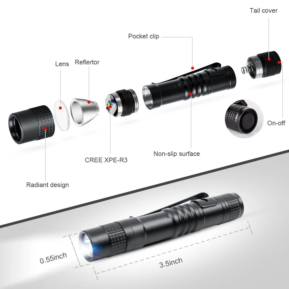 1 шт. Q5 светодиодный Яркий Мини-светильник для ручки 1000 лм, карм...