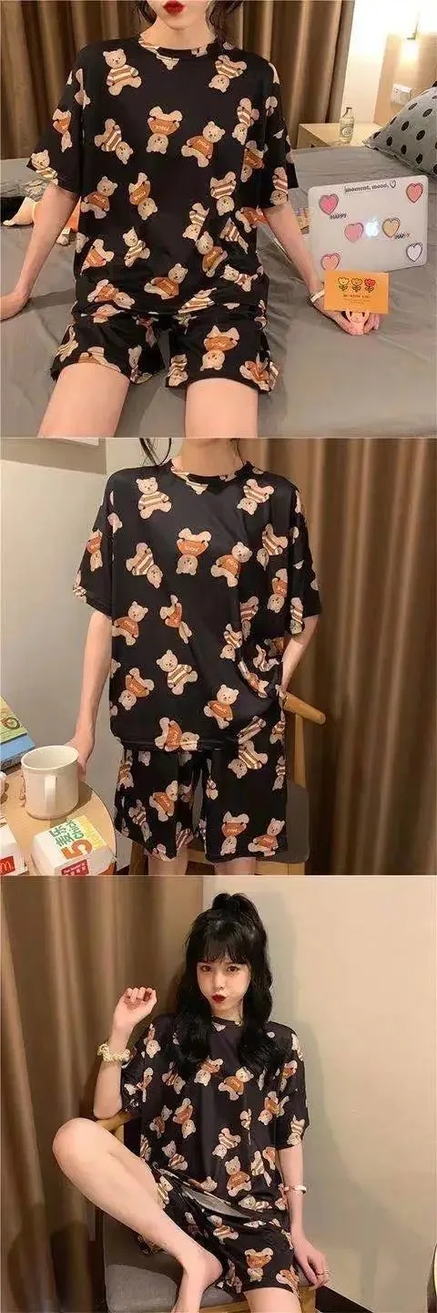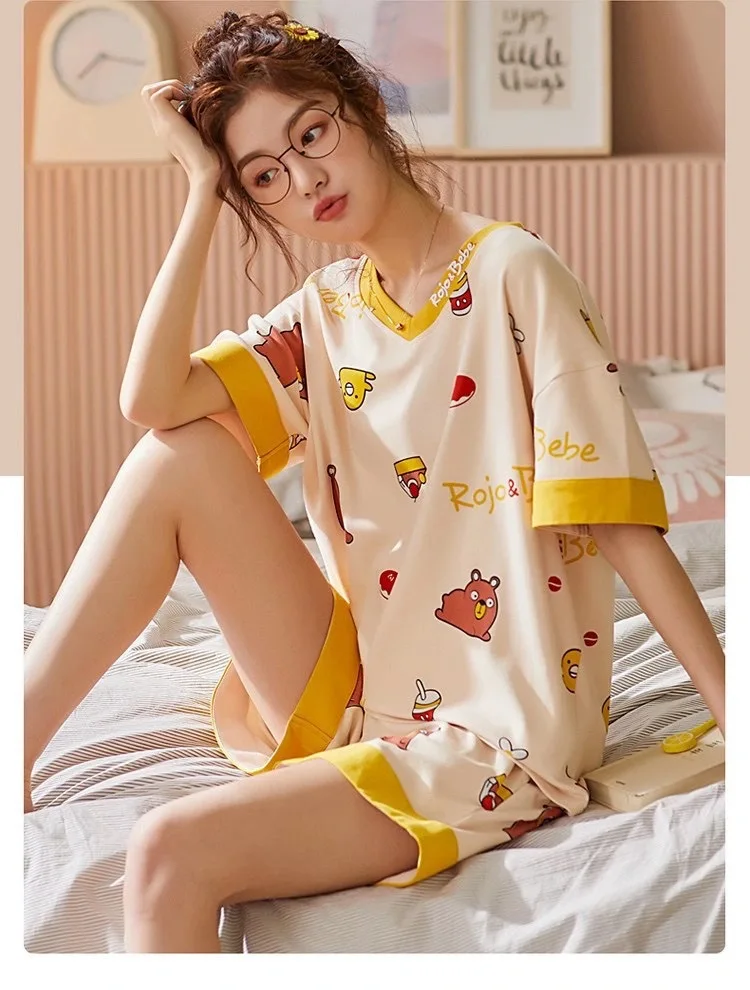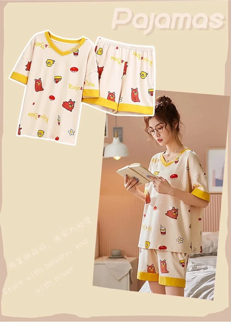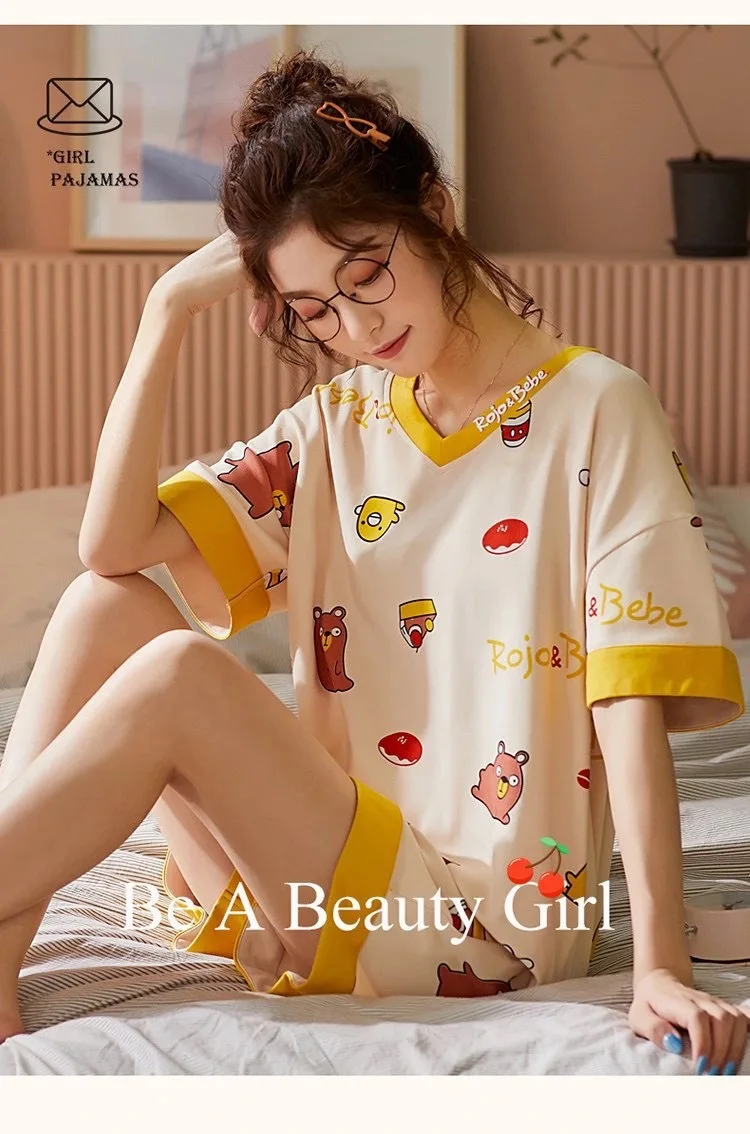 Женский пижамный комплект MAY LOVE YOU, тонкие милые шорты с коротким рукавом, ночная рубашка, комплект для подростков, милая мультяшная одежда для сна для девочек, домашняя одежда