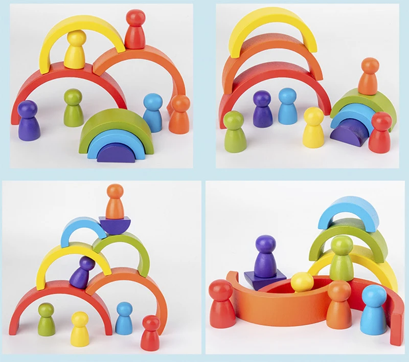 Деревянная Радужная игрушка Монтессори сделай сам, креативные деревянные радужные блоки для баланса, детская игрушка, развивающие игрушки для детей