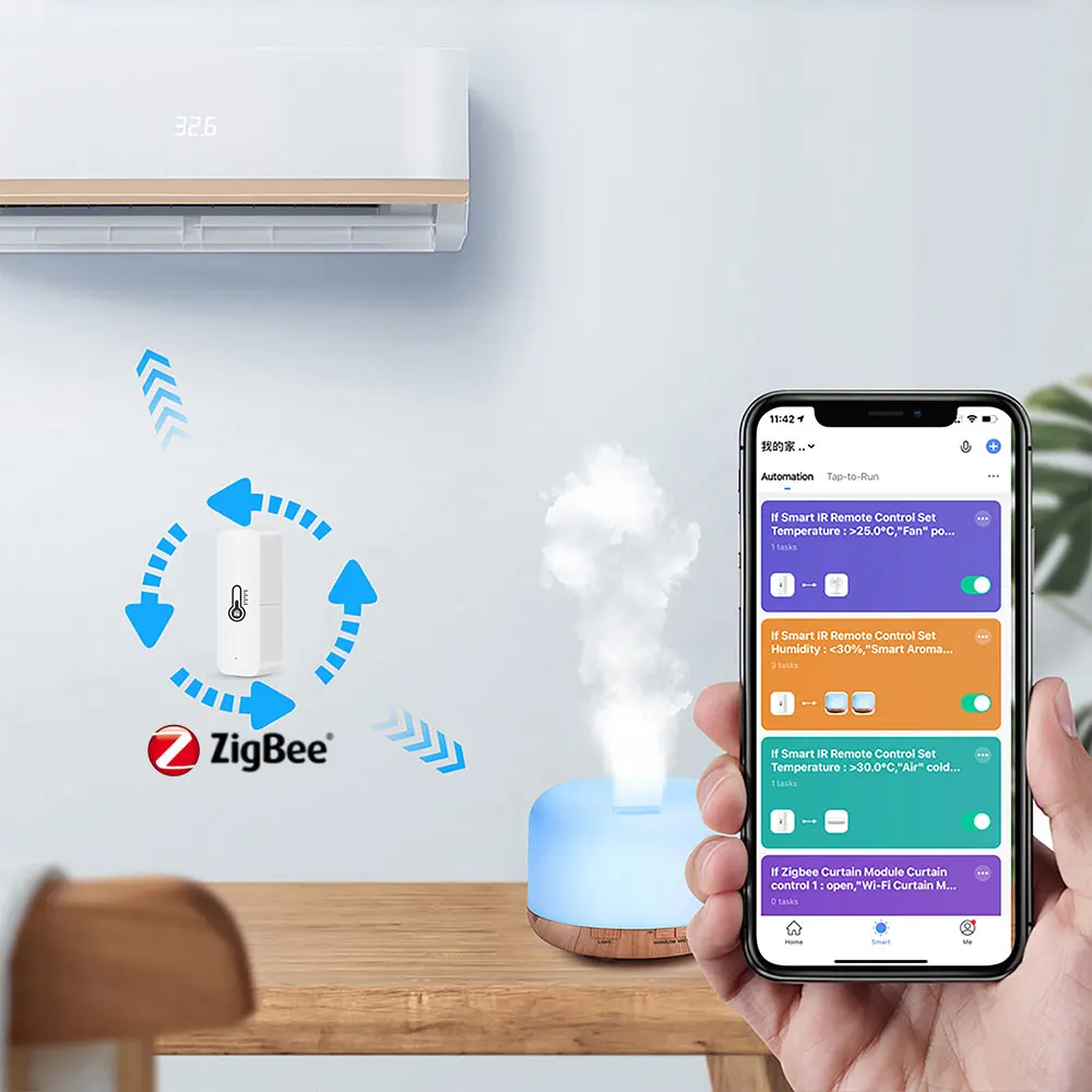 1.WiFi версия датчика температуры и влажности не требует концентратора;2. Датчик температуры и влажности Zigbee должен использоваться с шлюзом Tuay Zigbee;