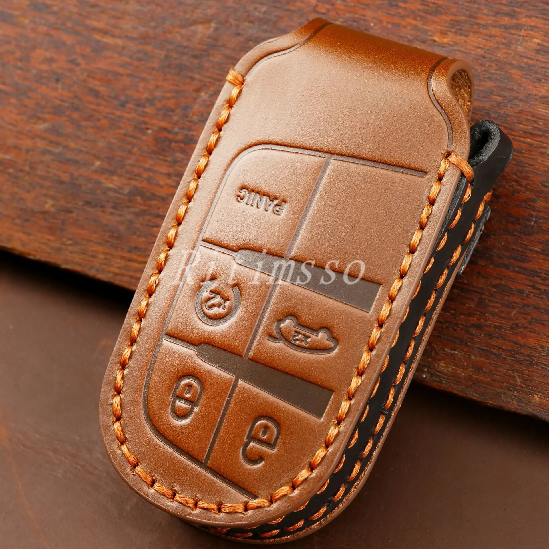 Чехол для автомобильного ключа с дистанционным управлением из натуральной кожи, чехол для Dodge Charger Дротика Challenger Durango Jeep Chrysler 300C Grand Cherokee Compass