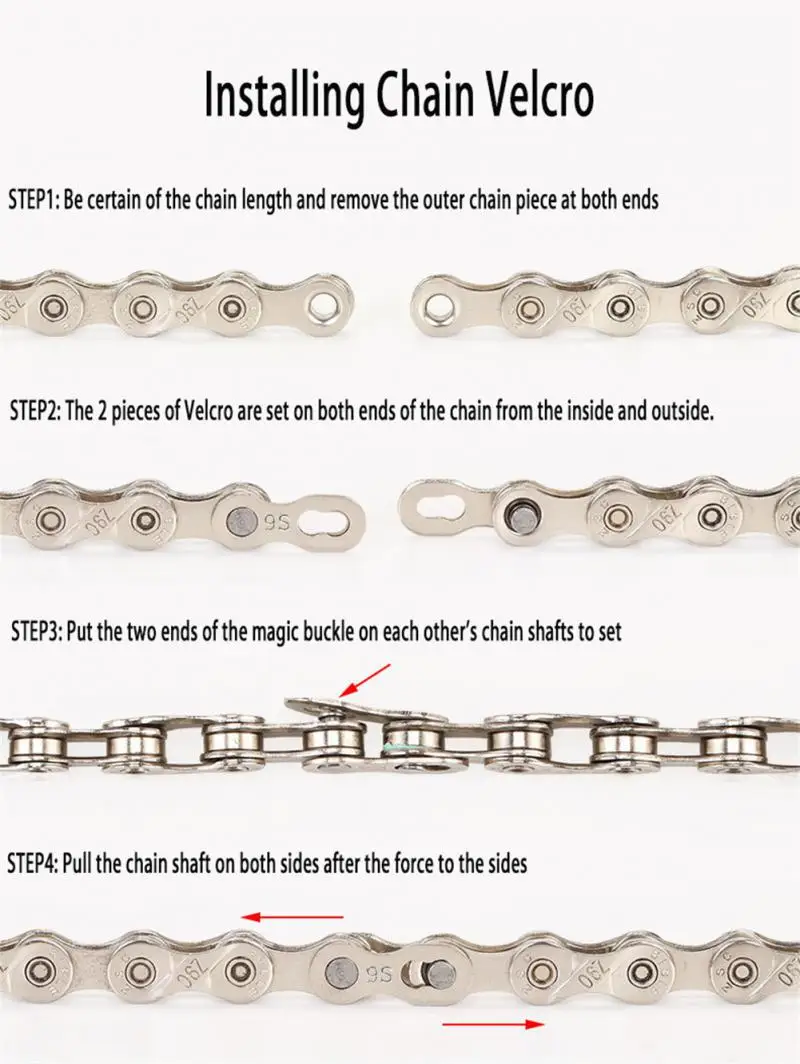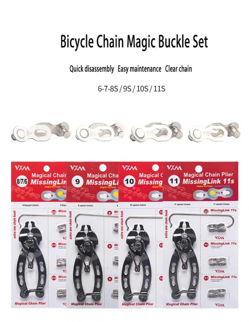 4. Практичная пряжка. Три пряжки для велосипедной цепи могут быть совместимы со всеми скоростями велосипедных цепей. Пожалуйста, обратите внимание на выбор модели, которая подходит для вашего велосипеда при покупке.