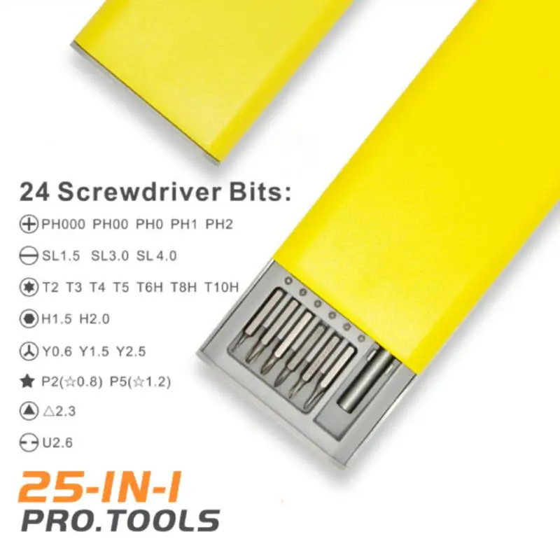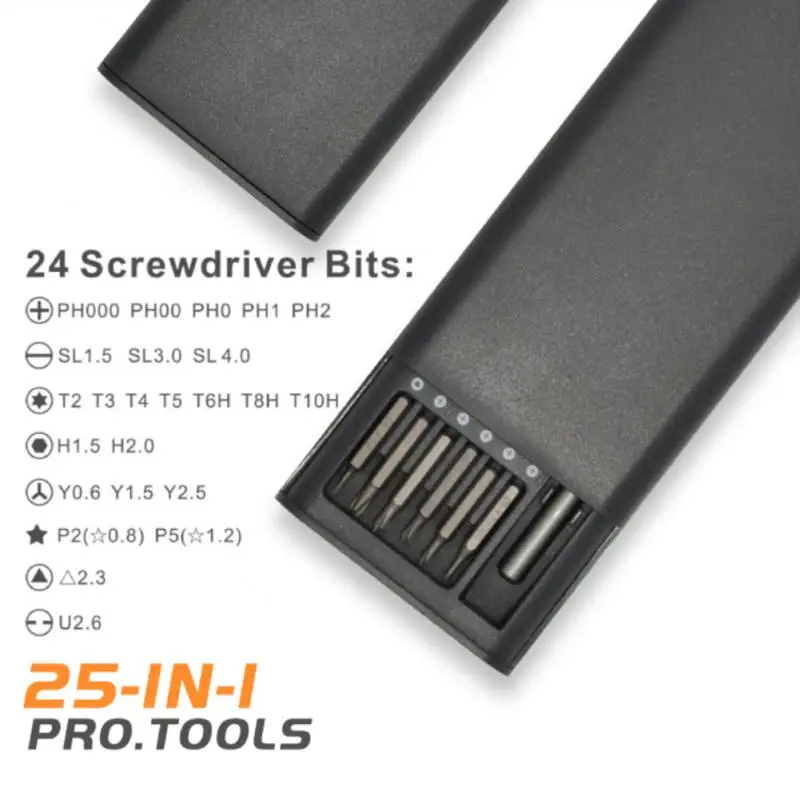 【Набор прецизионных отверток 】 многомагнитный драйвер, специально используемый для продуктов электронного оборудования. Этот набор отверток включает в себя 24 винтовых Биты (phillips, pentalobe, torx,hex, щелевые, треугольные и другие размеры). Он имеет широкий спектр применений.