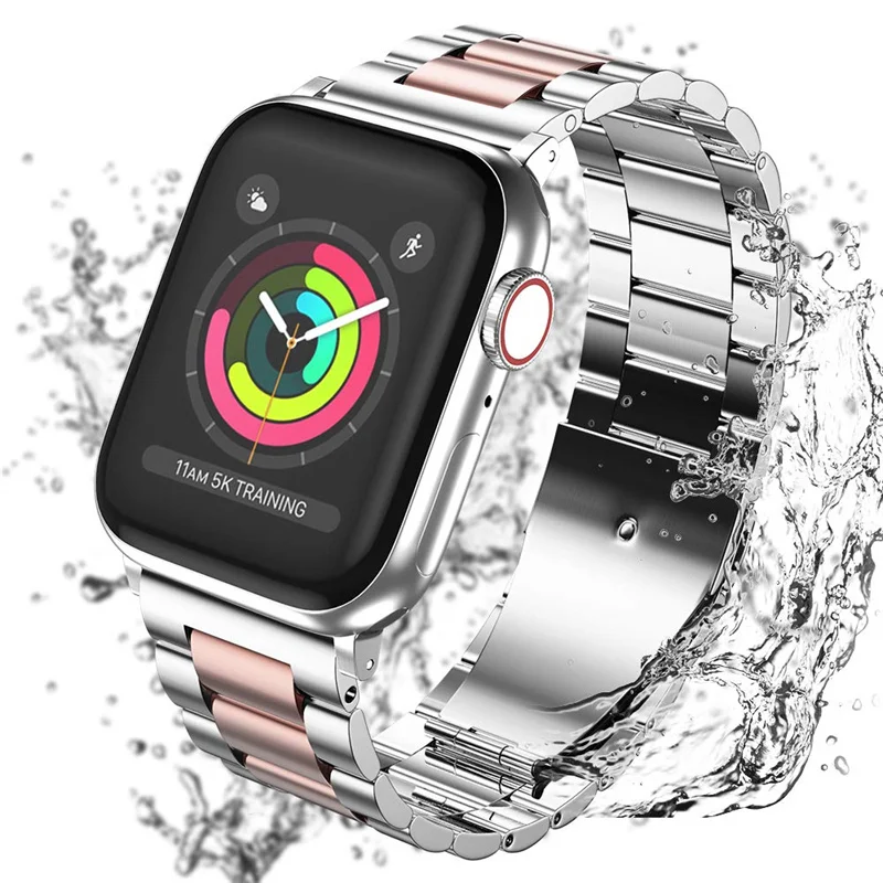 Металлический ремешок для Apple Watch band 44 мм 40 мм 42 мм38 мм, роскошный браслет из нержавеющей стали для iWatch series 3 4 5 6 se 7 45 мм 41 мм