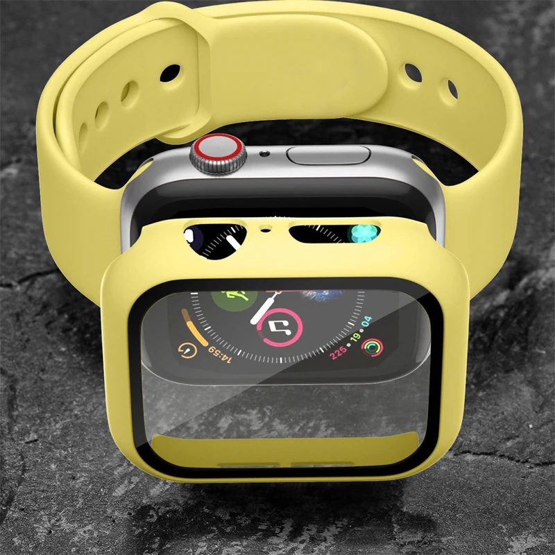 Стекло + чехол + ремешок для Apple Watch 7 band 44 мм 40 мм 45 мм 41 мм 38 мм 42 мм 44 мм силиконовый браслет для часов iWatch serie 3 4 5 6 se 7