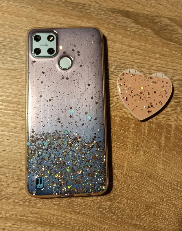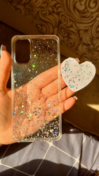 Быстрая доставка. Блёстки не двигаются, не плавают, но все равно красиво мерцают. Милое зеркальце, плотно не закрывается, будет открываться при наклоне телефона, это немного расстроило. В общем неплохой чехол, рекомендую к покупке.