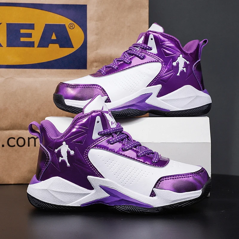 Детские кожаные кроссовки, блестящие, для баскетбола, Нескользящие, спортивная обувь для мальчиков и девочек