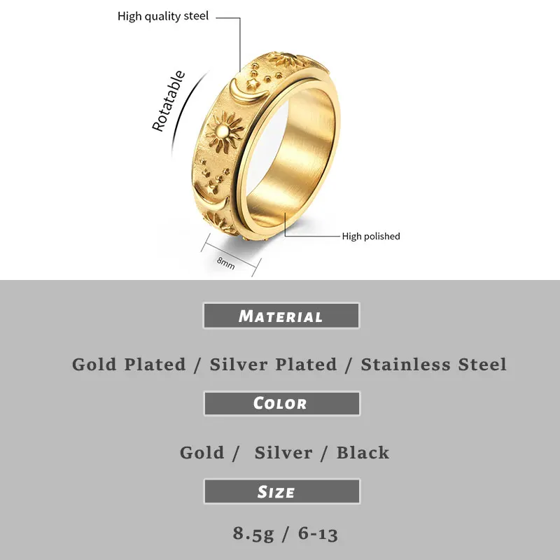 Женское кольцо для снятия стресса Солнце Луна звезды обещают обруча...