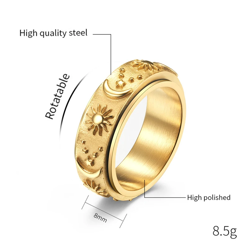 Прямая поставка, вращающееся кольцо из титановой стали, звезда, лун...