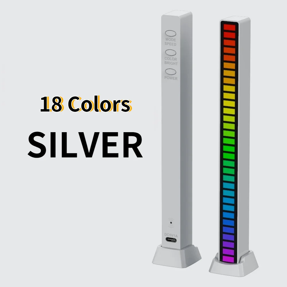 Название: rgb-ритм атмосферная лампаДоступны три цвета: черный/белый/серебристыйМатериал: акрил + АБСВходное напряжение: 5 В/1 АЦвета: 18Автоматический индукционный звук