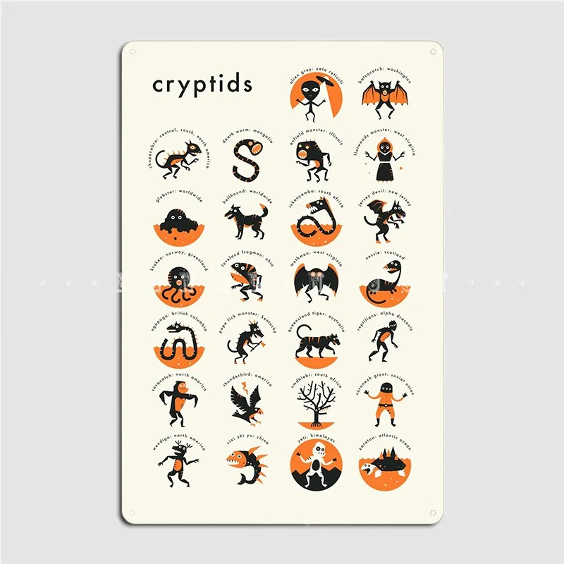 Деревянный плакат Cryptids A Z, постер с рисунком, Декор, винтажные постеры с деревянными знаками для клуба, паба, гаража