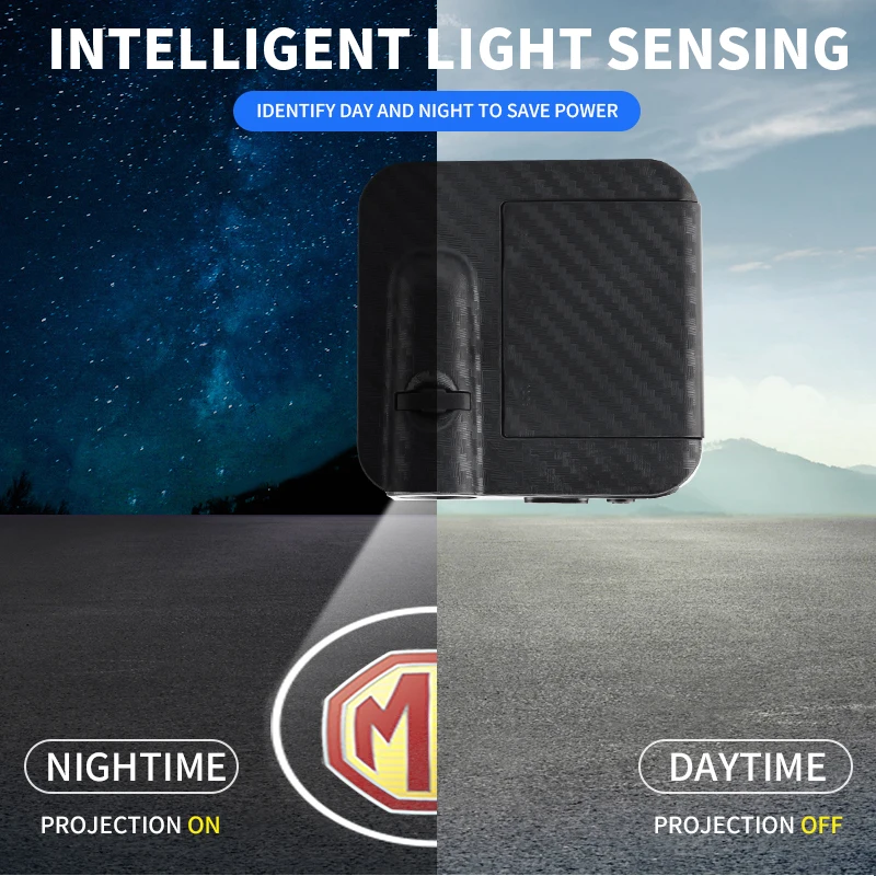 2. Умный светильник. Ослепляющий светильник с логотипом и сигнальный светильник будут отображаться на земле, когда вы откроете дверь автомобиля, и он выключится, когда вы закроете дверь.