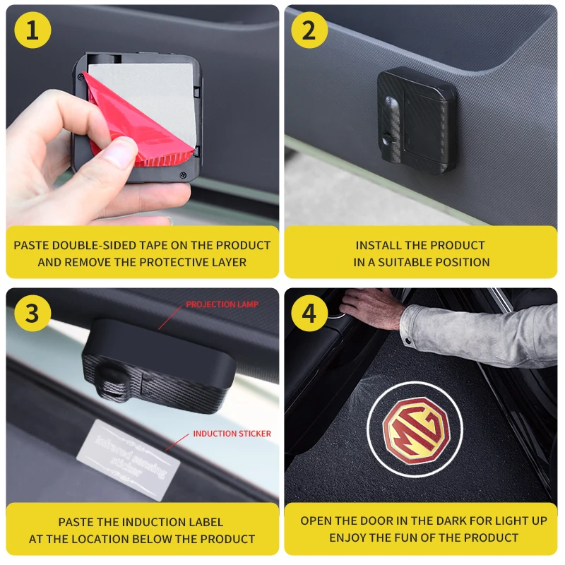 4. Прикрепите светодиодный дверной светильник к двери над порогом автомобильной двери