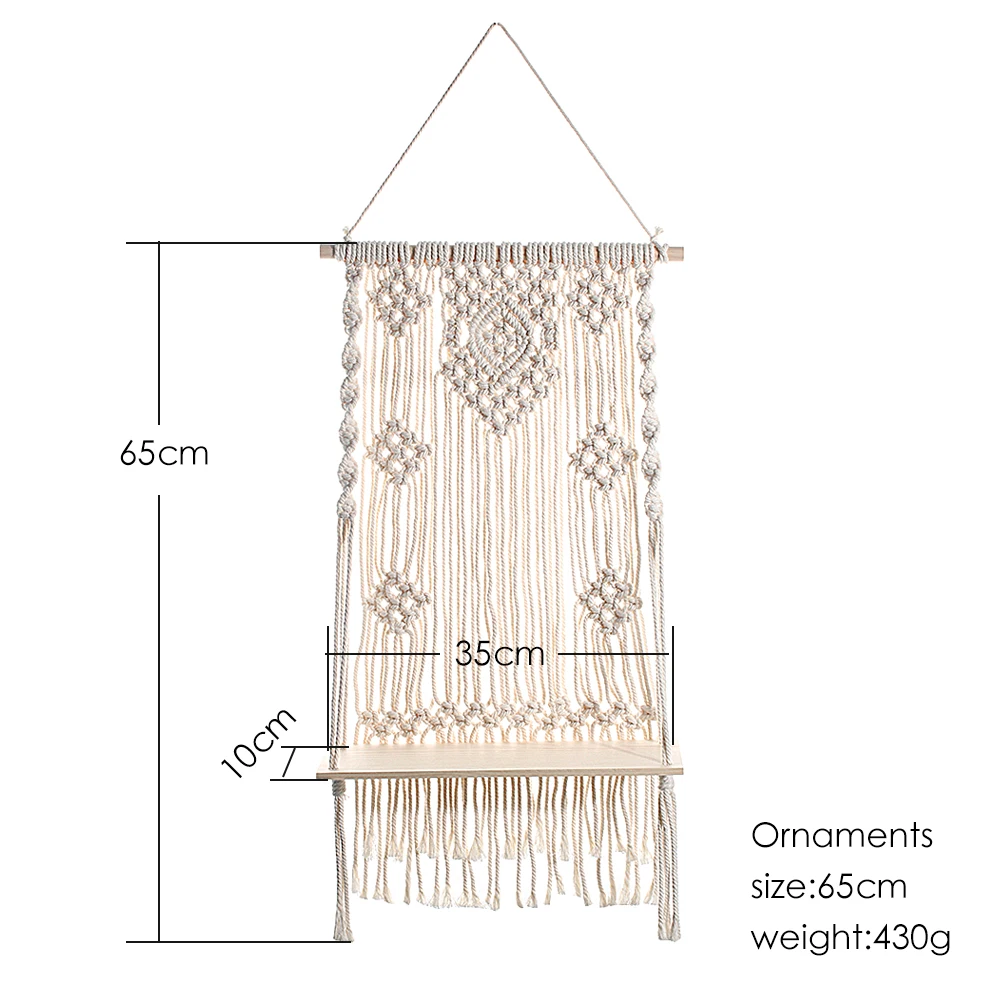 3. Беспроблемная установка: Наша настенная полка макраме легко повесить без сложных инструментов. Просто сдвиньте деревянную полку на место и Повесьте на стену гвоздем, винтом или крючком.