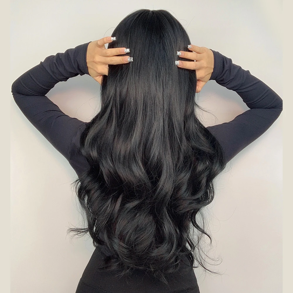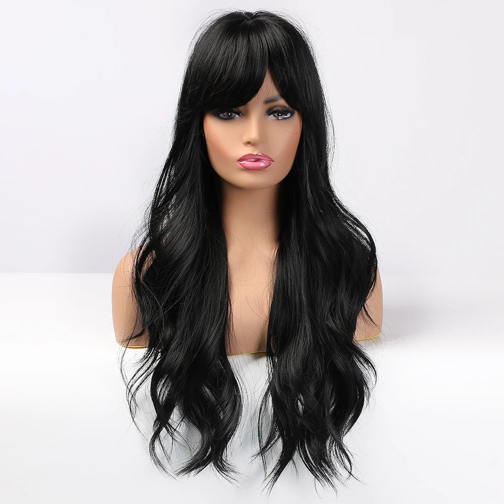 EASIHAIR длинные черные волнистые парики с челкой водная волна синтетические парики для женщин натуральные волосы парики термостойкие черные волосы парик
