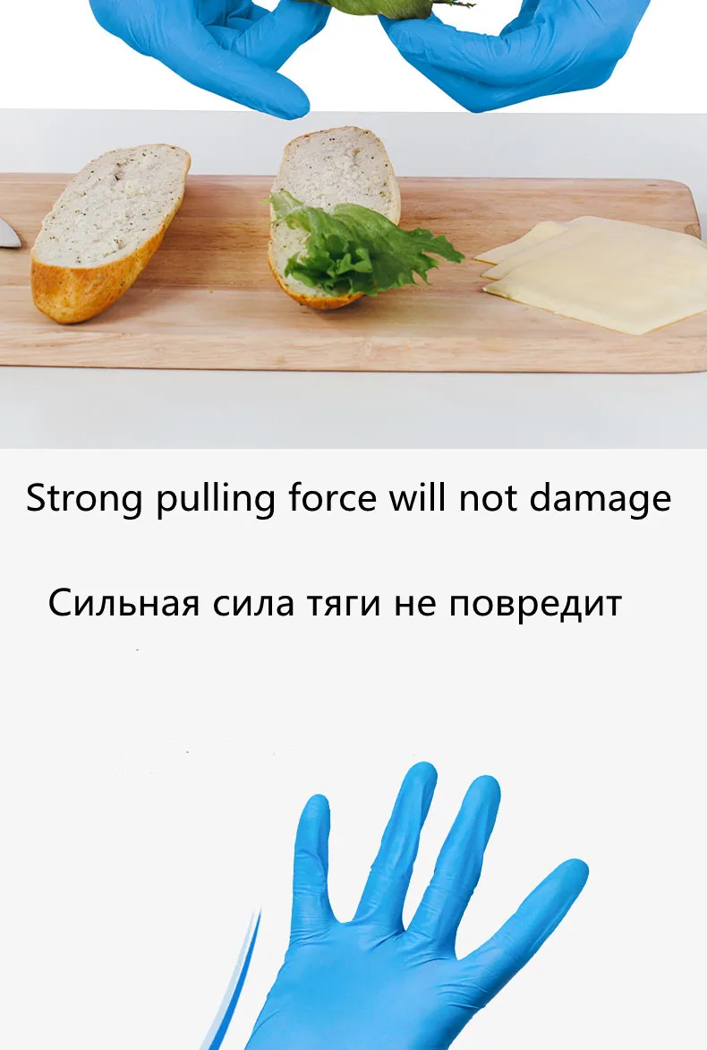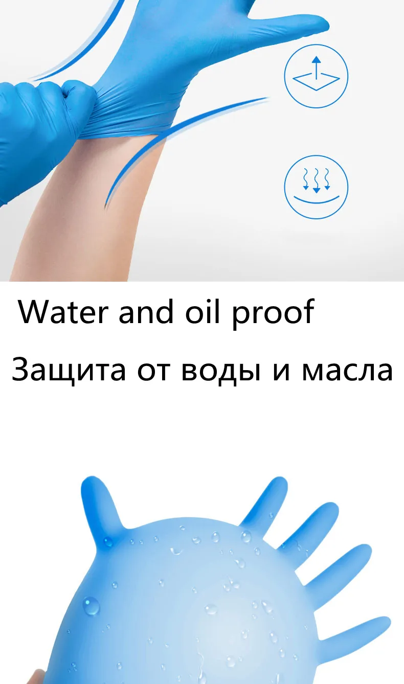 100 шт одноразовые перчатки из нитрилового латекса, посуда для дома, кухонная бытовая, синяя резина, водонепроницаемая, прочная, защитная резина